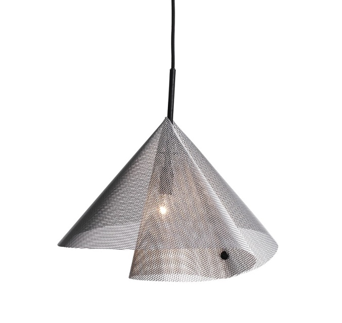Diffus Pendel finns i tre storlekar. Den är gjord i anodiserad sträckmetall i aluminium, gjord av en rund skiva som bockats och hålls samman av en läderknut. Röret inuti är också läderklätt.