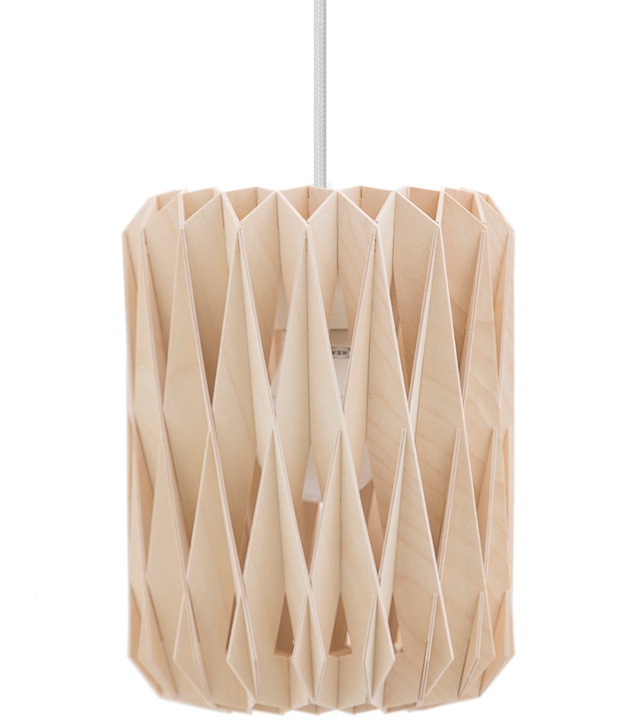 Pilke erbjuder en stort kollektion med lampor av björkplywood i geometriska former som ger ett vackert skuggspel på väggarna.