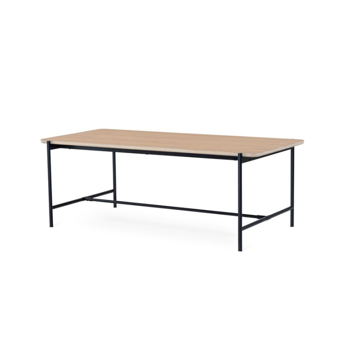 ALE matbord 210 har en bordsskivan i fanerad vitoljad ek som kombineras med ett underrede i svart pulverlackad metall.