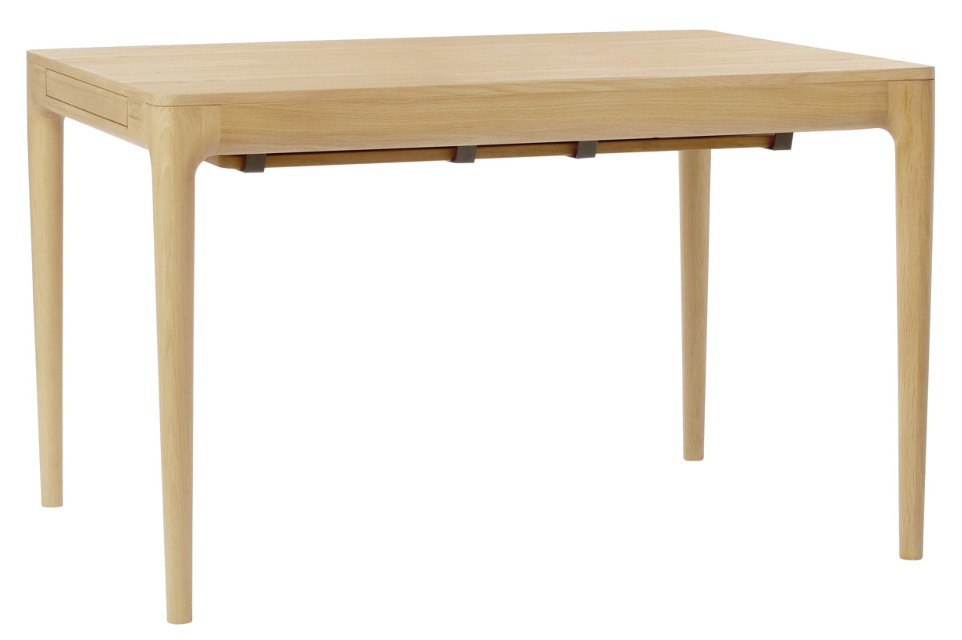 Det utdragbara matbordet har två tygklädda lådor i vardera ände av bordet, där du snabbt kan städa undan det stök och de spår som vardagen ibland lämnar efter sig. De två lådorna fungerar också som hållare för de två iläggsskivorna, vilket gör bordet stabilt även när det är utdraget. Iläggsskivorna förvaras under bordsskivan vilket gör den enkel att både ta fram och dölja.