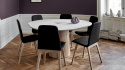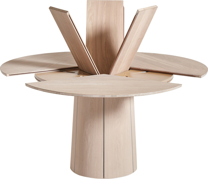 SM 33 är ett smart sätt att få ett stort runt bord där skivorna enkelt göms i pelaren. Detta är ett kvalitetsbord som tillverkas av Danska Skovby. Välj mellan flera träslag och även med kombinationen laminat på skivan. Se även filmen som visa konstruktionen.