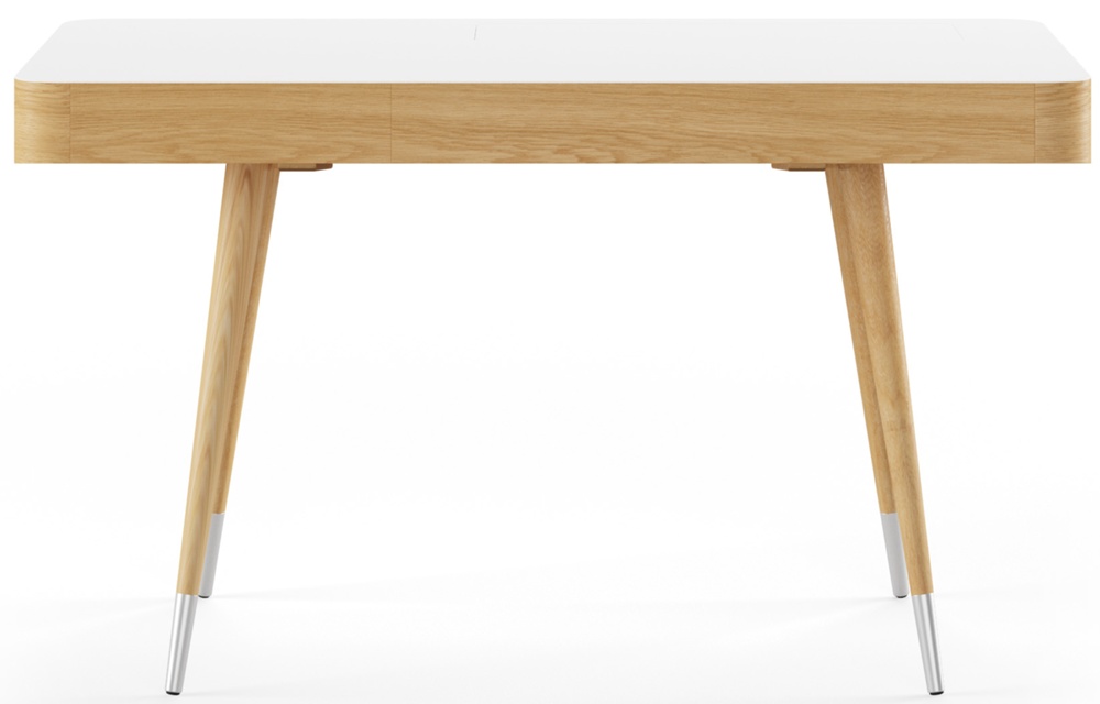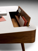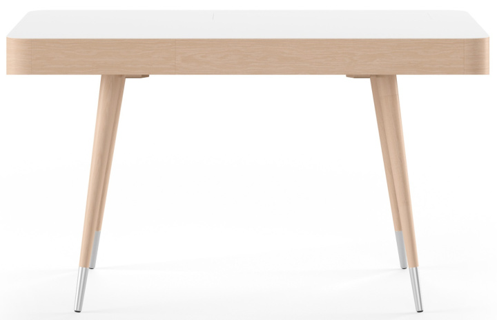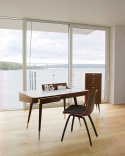 AK 1330 är ett vackert och modernt skrivbord tillverkat i Danmark av Naver Collection. Skrivbordet tillverkas i massivträ med topp i vit Corian vilket ger en robust, elegant och slitstark yta. I bordsskivan gömmer sig ett öppningsbart lock som döljer ett förvaringsfack. Det finns även en magnettavla för anteckningar och ett diskret kabelhål där du kan dölja din laddare. AK 1330 är även försett med två st lådor designade för att passa en bärbar dator samt övrigt kontorsmateriel.