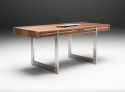 AK1340 är ett modernt och stilrent skrivbord av yppersta klass, tillverkat i Danmark av Naver Collection. Skrivbordet har flera finesser såsom ett dolt hål för kabelgenomföring genom bordet samt eleganta försinkade lådor. Det stilrena benstativet kombinerat med massivträ ger skrivbordet ett nästan svävande intryck och förhöjer vilket kontor som helst.