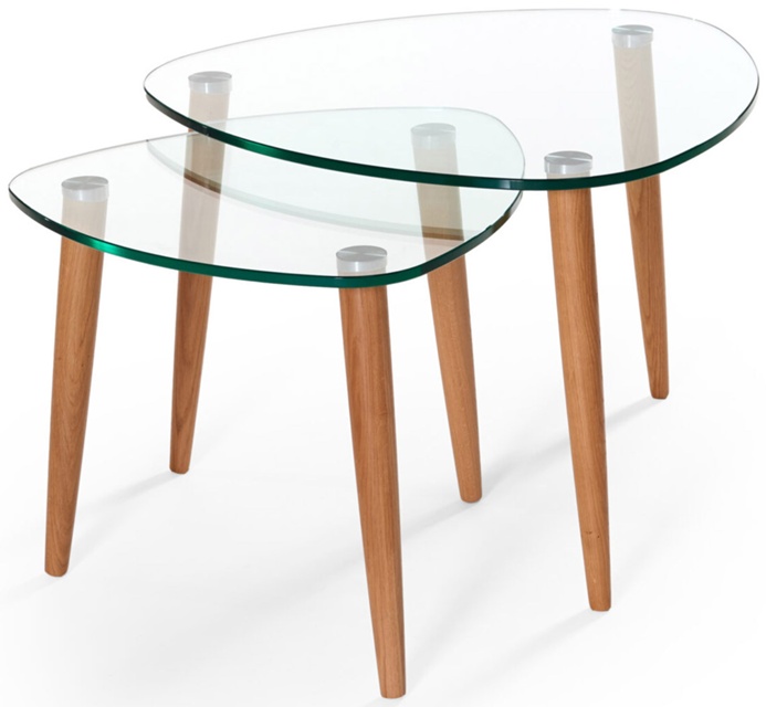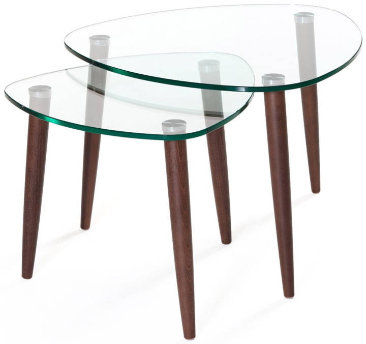 Clear är en härlig serie med satsbord tillverkat i Bodafors av Bordbirger. I detta set ingår ett stort och ett litet bord som antingen kan användas var för sig som sidobord, alternativt ställas ihop som ett satsbord. Skiva av glas med ben i trä alternativt MDF om du väljer vitlack.
