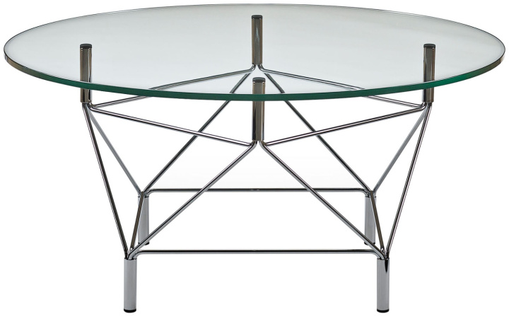 Här i kampanjutförande med förkromat stålunderrede och bordsskiva i glas eller marmor.