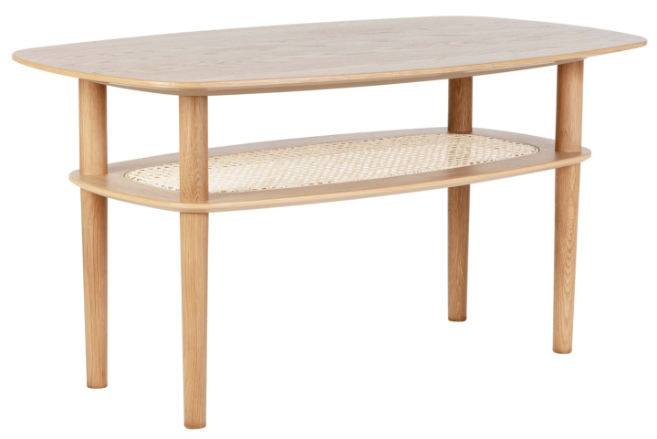 Soffborden Together är tillverkade av ek, med en hylla i rottingväv som ger liv åt designen. De rundade hörnen på bordet ger en smidig exklusivitet och ett luftigt uttryck till designen.