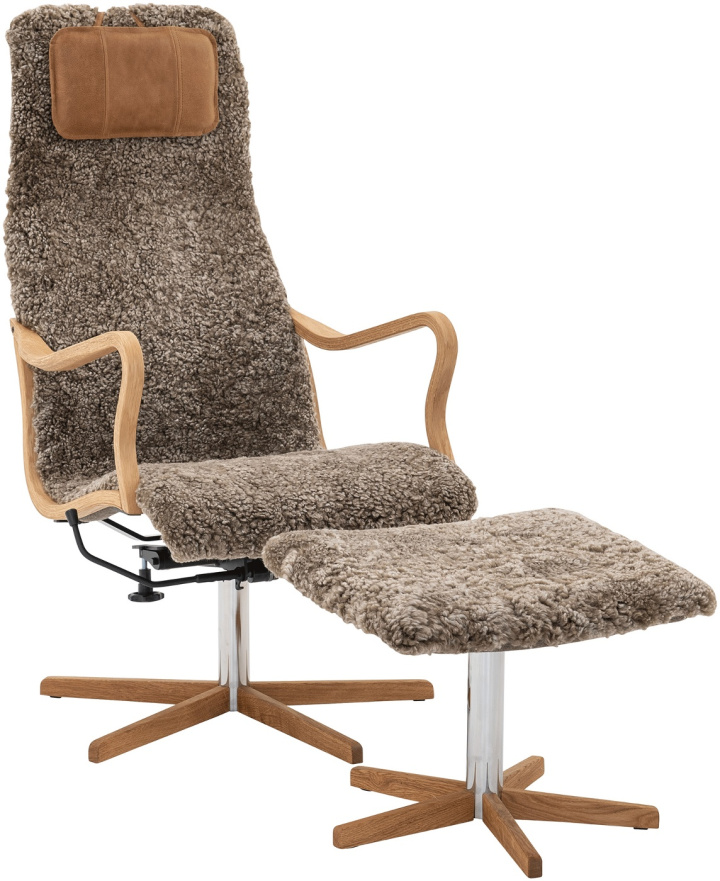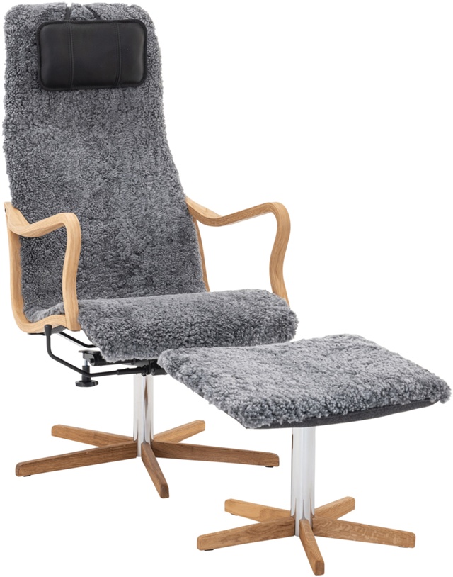 Chic fåtölj med fotpall Oljad ek/Fårskinn Skinnwille Grey Med gunga