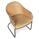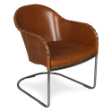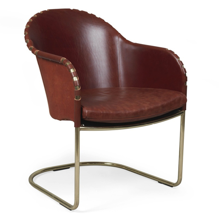 En härlig fåtölj med rogivande svikt. Finns i olika läder färger och olika stativ färger. Stoppning i kallskum. Det angivna priset gäller för underrede i krom eller mattkrom.