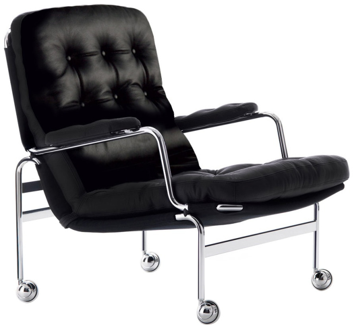 Denna klassiskt eleganta fåtölj formgavs av Bruno Mathsson 1969 och är den första möbeln i ett framgångsrikt samarbete som pågick under en lång rad år. Sköna stoppade plymåer vilar på ett förkromat stativ med bärande väv. Karin finns även med djuphäftad plymå. * Ej vändbara dynor.