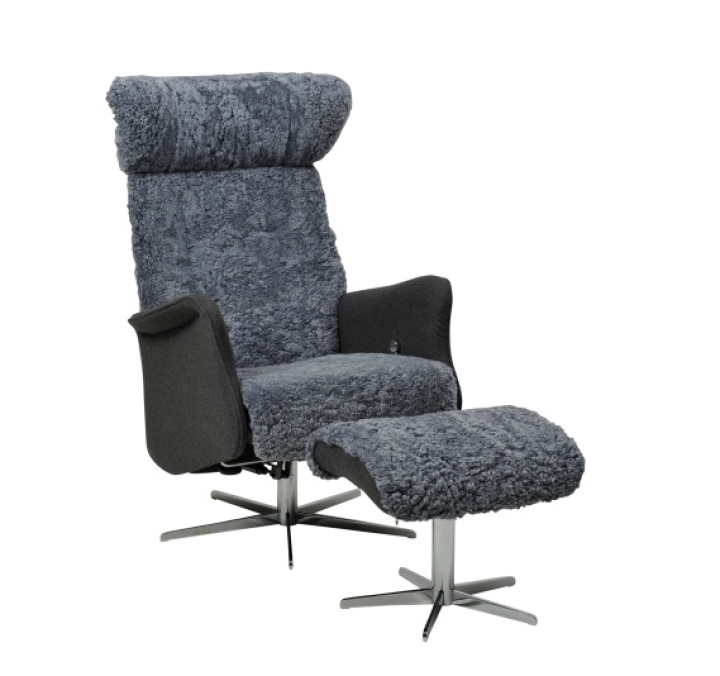 Här säljs den till kampanjpris i tre olika fårskinn. Men du kan välja den i andra tyger eller läder om så önskas.