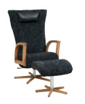 Focus fåtölj med pall med optimal komfort med trädetaljer i ek. Enklare att hitta sin favoritställning ha det inte varit. Du ha möjlighet att glida ryggen, gunga i fåtöljen som går att ställa hårdhet på eller låsa helt och ett ställbart nackstöd. Här visas fåtöljen focus i fårskinn, ett material som anpassa sig efter om det är varmt eller kallt, rätt skött så har du en möbel i många år..