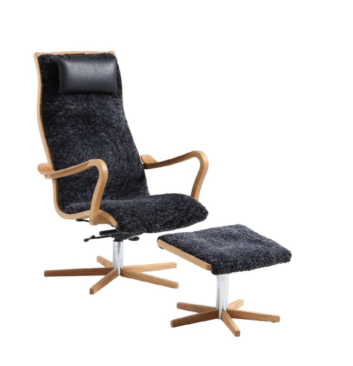 Furiren fåtölj är en smäcker och elegant fåtölj designad av funktionalisten G.A Berg. Bröderna Andersson tillverkar fåtöljen i formpressad oljad ek, och här visas den i fårskinn. Denna fåtölj har både snurr- och gung-funktion. Gungan går att låsa och det är även möjligt att ställa hårdheten på denna under fåtöljen. Furiren är här klädd i fårskinn som är ett fantastiskt material som anpassa sig efter och det är varmt eller kallt. Rätt skött har du en fantastisk möbel i många många år...