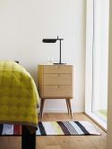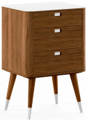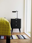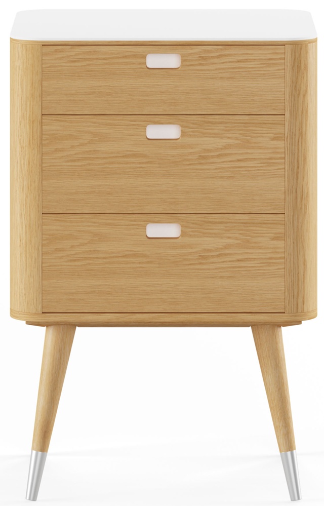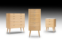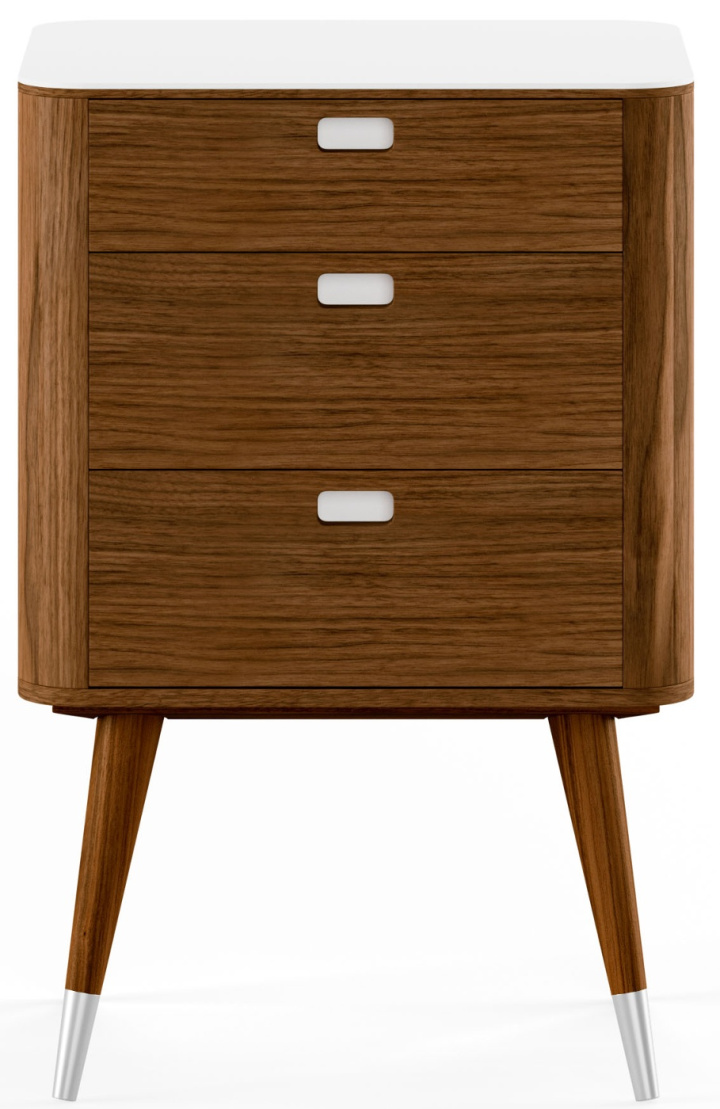 AK 2410 av danska Naver Collection är en av möblerna i en serie med moderna och stilrena förvaringsmöbler. På toppen har de en topp av materialet Corian i en elegant vit färg som passar utmärkt för möbelns uttryck. I tillägg finns Corian inlagt i handtagen för att ytterligare förstärka denna möbels känsla av kvalitet.