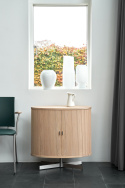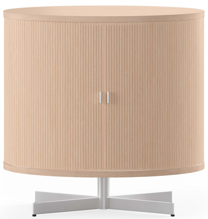 AK 1365 är ett otroligt fint skåp tillverkat i Danmark av Naver Collection. Dess ovala form kombinerat med jalusidörrar och detaljer i stål ger ett elegant och klassiskt uttryck - en möbel som passar i de flesta rum. Bakom dörrarna finns ett hyllplan och ger gott om plats för förvaring.