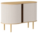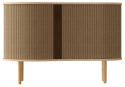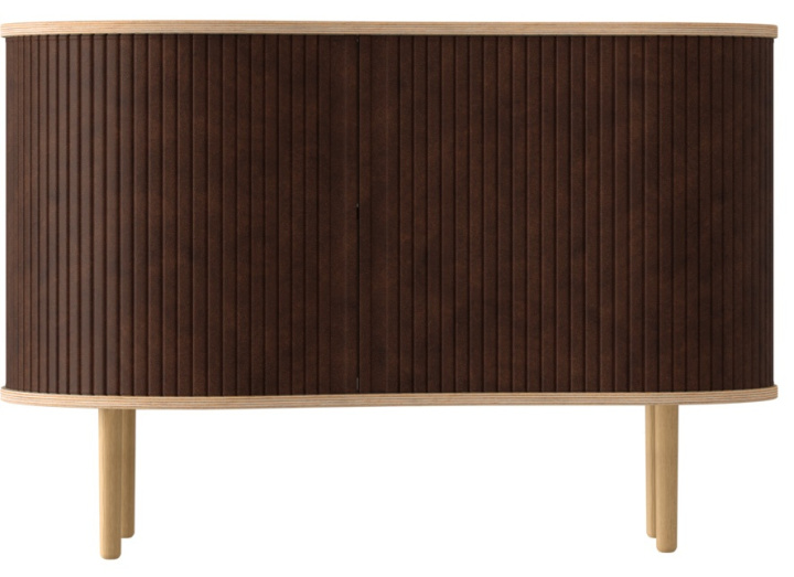 Detta skåp finns i oak, dark oak och black oak, med jalusiluckor i fyra noggrant utvalda färger av vår 100% återvunna Horizons-textil (Sugar Brown, Sterling, White Sands, Shadow) och två färger av konstläder (Charcoal, Hazelnut). Jalusidörrarna är utbytbara, vilket ger flexibiliteten att enkelt byta dem själv, vilket i sin tur förnyar designen utan att behöva köpa en helt ny möbel. Detta tillvägagångssätt bidrar till att bevara världens resurser samtidigt som det erbjuder ett hållbart sätt att förnya ditt hem.