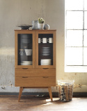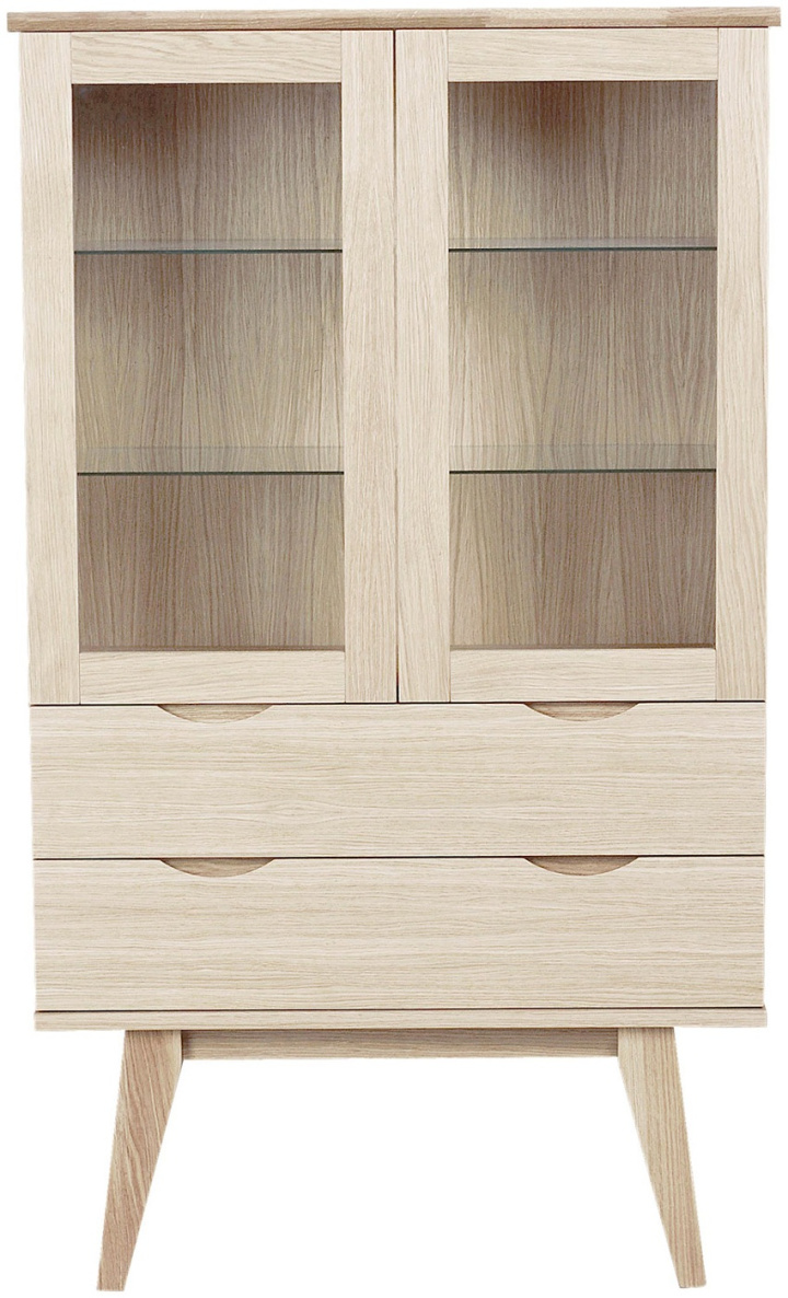 Filippa är ett vitrinskåp är modernt samtidigt som det känns tidlöst Mjukstängande lådor och glasluckor förstärker känslan av kvalitet. Benen är lätt utställda vilket ger ett modernt uttryck.