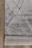 Mjuk och len matta med fin lyster. I mattans något längre lugg finns partier med kortare lugg i kontrasterande färg som bildar ett dekorativt mönster. Mattan har en baksida i jute som ger stabilitet och gör att mattan ligger snyggt på golvet. Passar perfekt för att ge en mysig känsla till vardagsrummet eller sovrummet. Lindi i färgställning grå har en mjukt varmgrå nyans med fin lyster. Mönstret har en mörkt grå ton.