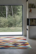 Taza är en härlig handvävd ullmatta med ett grafiskt triangelmönster i mustiga färger. Mattan finns i två sprakande färgställningar som heter multi och autumn. Färgpaletten är noga avvägd för att kännas harmonisk på samma gång som det ger ditt hem en ordentlig färgklick.