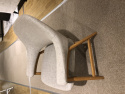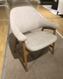 En nätt och sittriktig fåtölj från norska Brunstad, klädd i tyg Scicence beige och oljad ek i stommen.