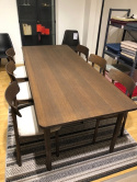 Nea matgrupp med bord med 1st iläggsskiva och 6 st stolar, tillverkat i brunoljad ek.