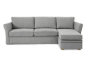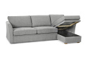 Divanen har förvaring och kan sättas på vilken sida man önskar.