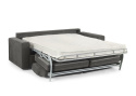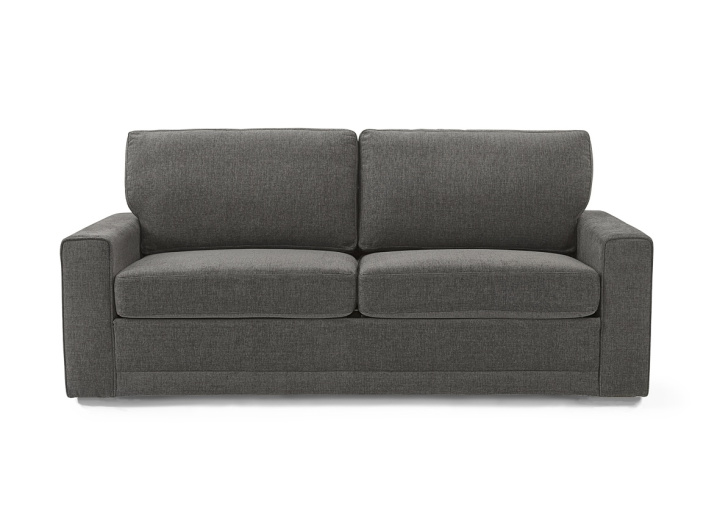 Svensktillverkad bäddsoffa från Möbelform. Men en enkel uppbäddning där kuddarna viks under bädden när den bäddas ut. Framåtbäddad med resårbädd vilket ger en generös och komfortabel extrabädd.