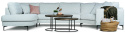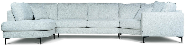 Free är en stilren och byggbar soffa med skön sittkomfort och generöst med utrymme. Här i en variant som maxi-hörnsoffa med gott om plats för hela familjen. Just denna generösa kombination erbjuds till ett fast lågt pris i tygerna Shaff och Modis.