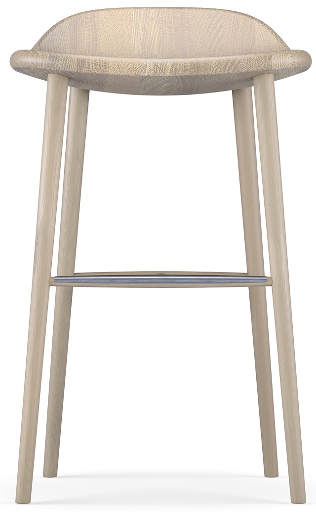 Barstolen finns tillgänglig i två olika höjder och det ingår alltid ett fotstöd av metall.