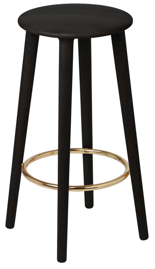Med en elegant böjd sits och ett fotstöd tillverkat av mässing, designen är genomtänkt konstruerad för att erbjuda bekväma sittplatser vid köksbänken, vilket gör den idealisk för avslappnade sammankomster med vänner. Pallen har också en praktisk mässingskrok under sitsen, perfekt för att hänga upp en jacka eller handväska, vilket ger pallen ett praktiskt inslag som förbättrar dess funktionalitet.