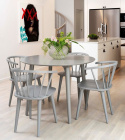 Carmen är en trevlig pinnstol med svängd rygg och bekvämt bred sittyta. Den tillverkas i massivt, lackat gummiträ.