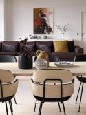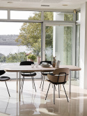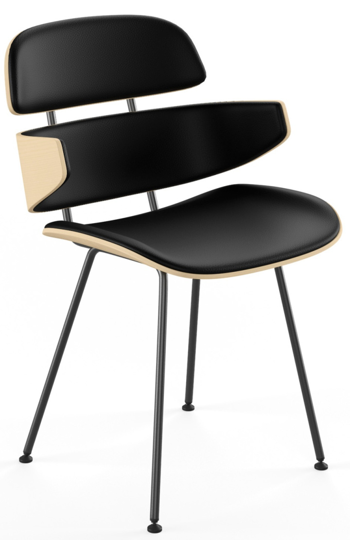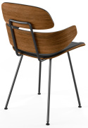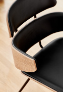 Stolens formpressade träelement har tagits fram och skurits till mjuka kurvor som ger ett välkomnande intryck när du sätter dig. Detta kombineras med ett enkelt men elegant svart stålstativ vilket ger stolen en blygsam lätthet som passar perfekt in i det moderna hemmet.