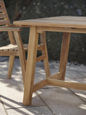En serie i stilren naturlig teak. Formen är harmonisk med en bekväm och omslutande sits. Dessutom är de lätta att flytta, vilket är perfekt när du behöver extra sittplatser och bord.