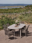 Lomma Ellipse är en utveckling av ett av de mest populära borden från Brafab. Tillverkat i underhållsfri och vädertålig aluminium och dessutom utrustat med en smart butterflyskiva där du med ett enkelt handgrepp förlänger bordet så kan vi verkligen förstå varför det är så poppis. Bordet är 220 cm långt och med butterflyskivan utfälld får bordet ett totalmått på hela 280 cm.