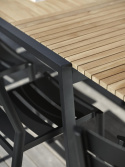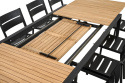 Ett lyxigt matbord som verkligen tar för sig och förlänger hemmet utåt. De snygga teakribborna förstärks av de raka stålbenen. Och för de stora sammankomsterna finns dolda förlängningsskivor som fälls fram med en läcker butterfly-lösning. Utfällt blir bordet hela 3,2 meter långt.