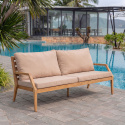 Tillverkad i Teak A/B Grade, erbjuder soffan exceptionell hållbarhet och motståndskraft mot väder och vind – vilket gör den idealisk för altan, terrass eller trädgård. Den gedigna träramen kombineras med mjuk komfort genom medföljande beiga sittdynor och ryggkuddar i spunnen polyester, noggrant utvalda för att stå emot sol, regn och slitage.