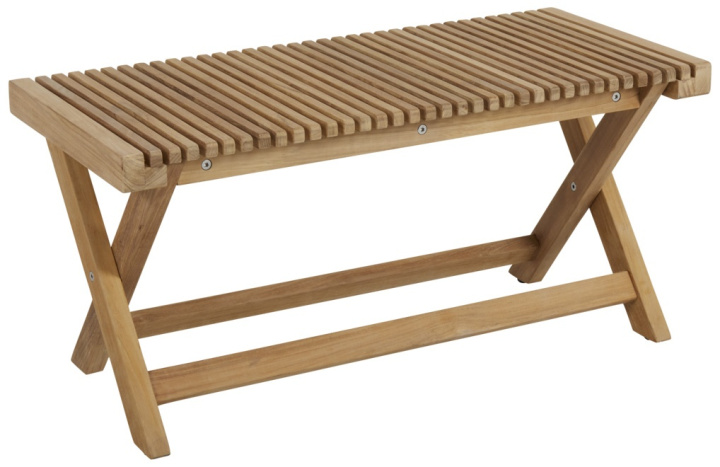 En bänk i två storlekar och med många möjligheter – på gaveln vid bordet när sommargästerna blir många, utanför dörren eller på den vackraste platsen i trädgården. Denna bänk i elegant ribbad teak smälter in var den än ställs, och bjuder in till en paus för en eller flera personer.