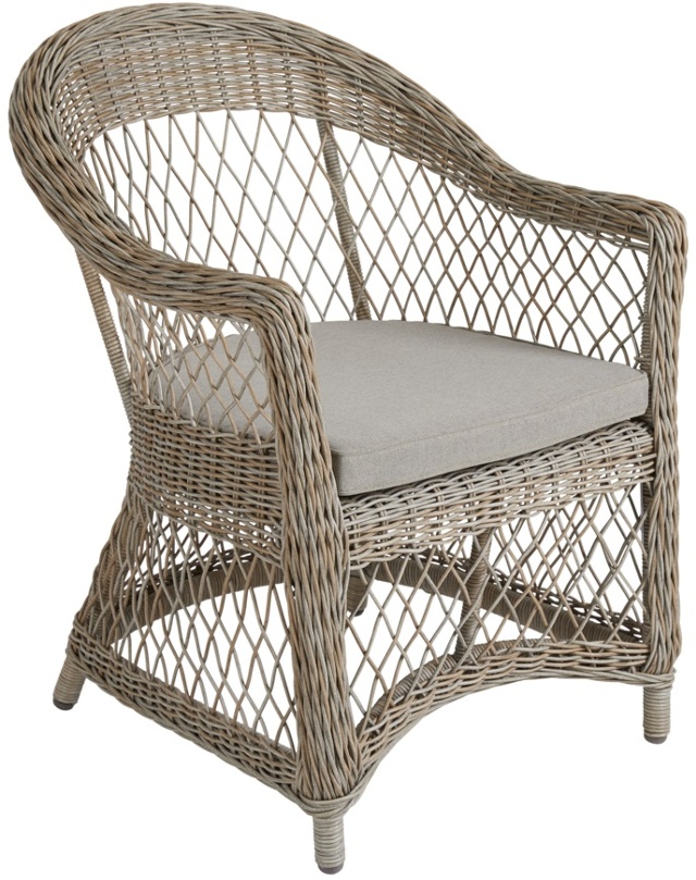En klassisk design och med öppen vävning i konstrotting. Dynor i olefintyg.