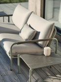 Lerberget är en premiumserie utöver det vanliga, både i kvalité och design. När de bästa möjliga materialen möter genomtänkt design i varje detalj har du en soffgrupp som inte bara drar blickarna till sig, här sitter du även mer bekvämt än någonsin. Stomme i rostfritt i två sobra nyanser, breda dekorativa ribbor under extra sköna kuddar och vackra detaljer i armstöden – denna grupp kommer att göra sig perfekt på alla uteplatser den möter.