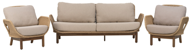 I priset ingår Lily 2,5-sits soffa + 2 st Fåtöljer. Dynor ingår och bör ej utsättas för regn.