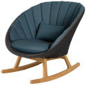 Peacock gungstol har designats av Foersom & Hiort-Lorenzen MDD. Det är vår Peacock-loungestol med en gungtwist. Stommen är tillverkad i teakträ och sitsen är flätad i Cane-line Soft Rope. Den unika kombinationen av den varma teakglöden och den mjuka, bekväma flätningen ger en omfamnande design som du kommer att älska. Det handflätade mönstret är tillverkat i Cane-line Soft Rope, gör stolen optimalt komfortabel, och är perfekt för utomhusbruk i alla klimat.